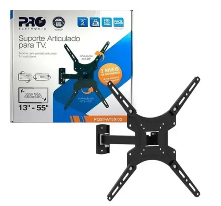 SUPORTE TV PROELETRONIC C/ 3 MOVIMENTOS 13″ A 55″
